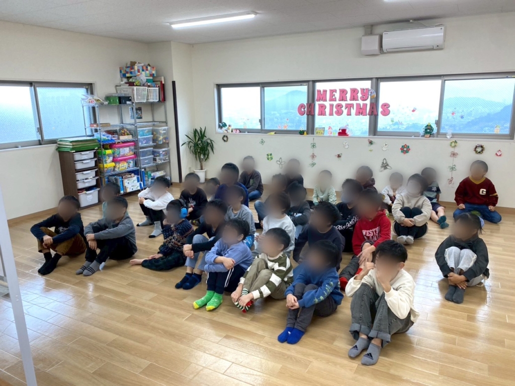 記念撮影ではサンタさんの格好に扮し、受け取った