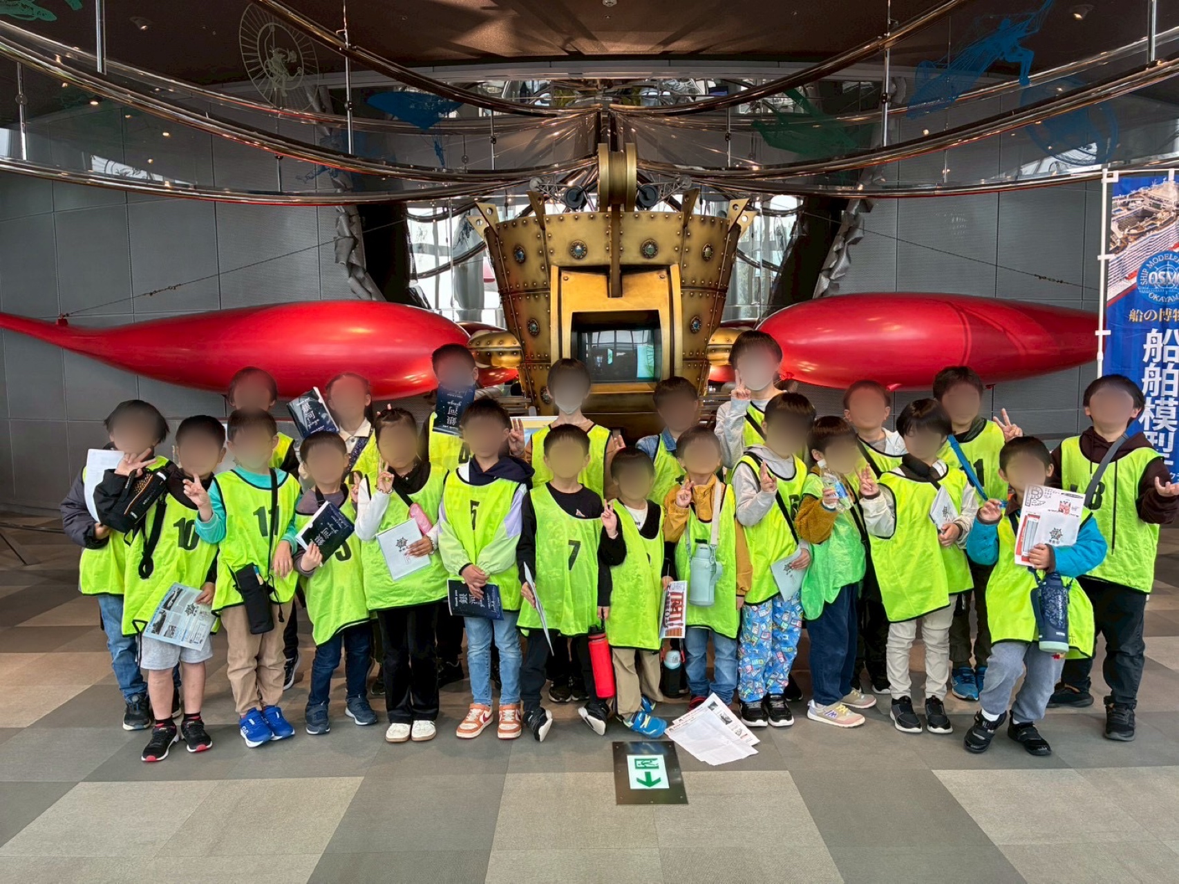見学したり、来館記念スタンプを押したり、顔はめ