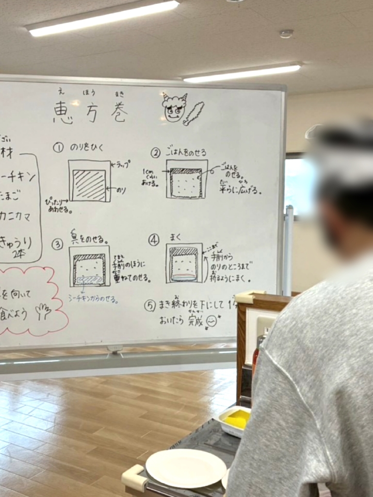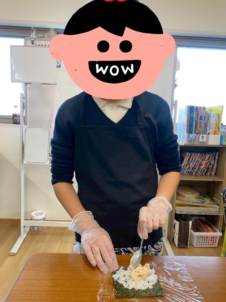 ラボでは一足早くおやつ作りで恵方巻を作り