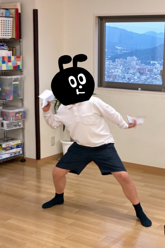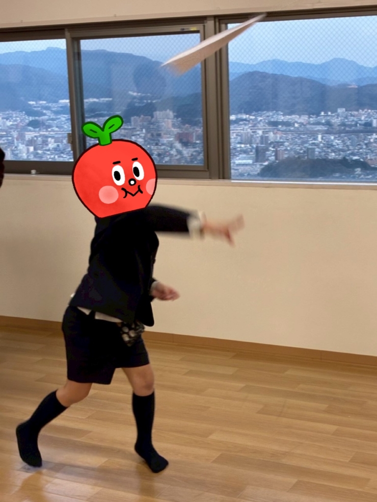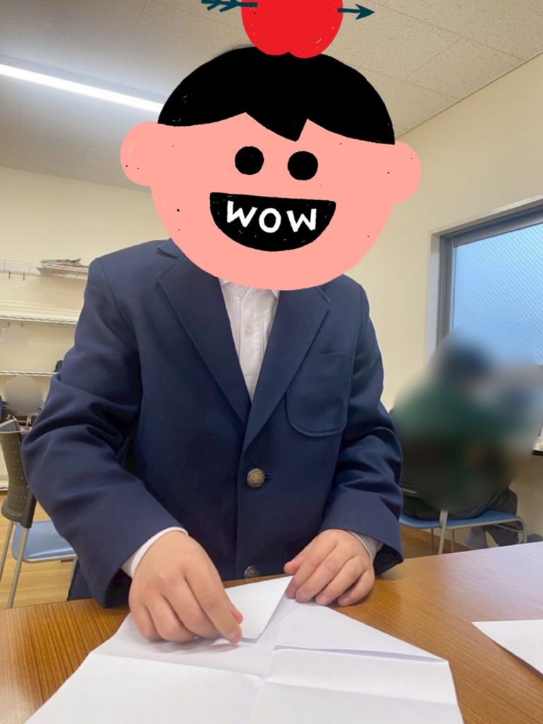 紙飛行機が出来上がったら、早速試験飛行🪽
