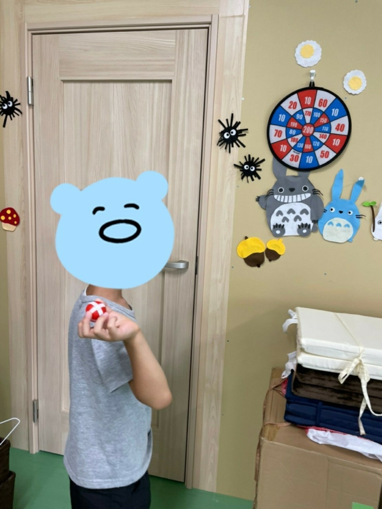 こんにちは、春日野ラボです。今日は外出予定でしたが、先週から続く大雨の影響により室内での活動に変更しました。チャレンジランキングと銘打って「豆つかみ」と「輪投げ」をしました。子供達だけでなく職員も参加して大盛り上がりでした(*^_^*) -