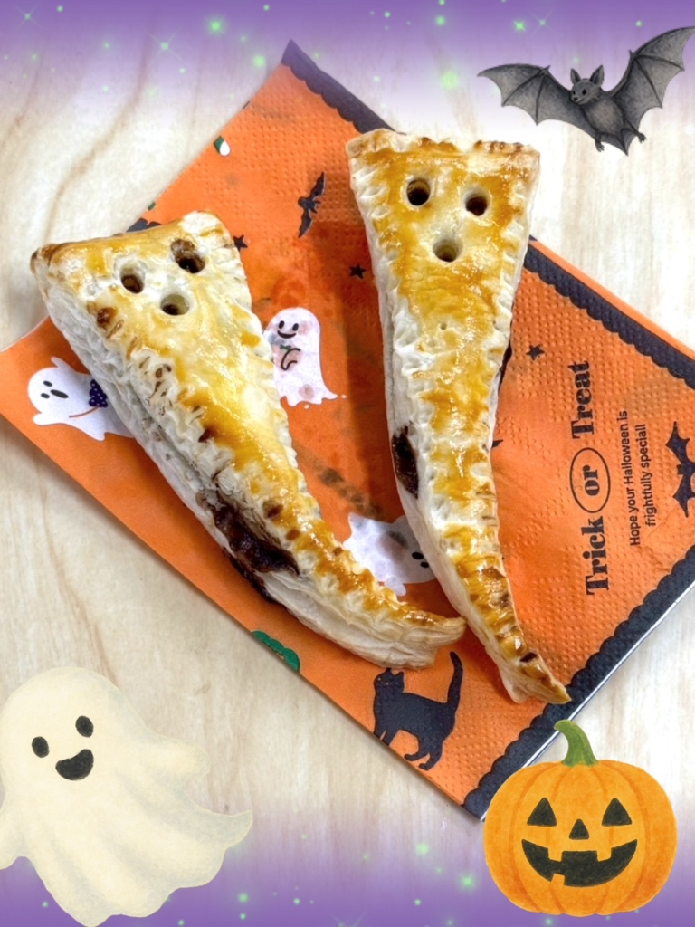 こんばんは、春日野ラボです。今日のおやつ作りはハロウィンに合わせて「おばけチョコパイ👻」を作りました👩🍳三角に切ったパイ生地を2枚用意し、まず最初の1枚にストローを使って目や口の形にくりぬきおばけの絵を描きます🎵もう一枚のほうはたっぷりチョ...