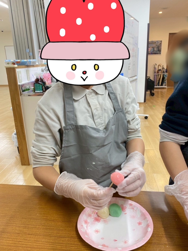団子が茹で上がったら冷水で冷やし竹串に3色