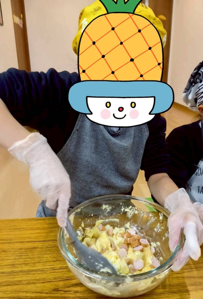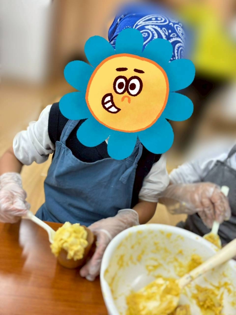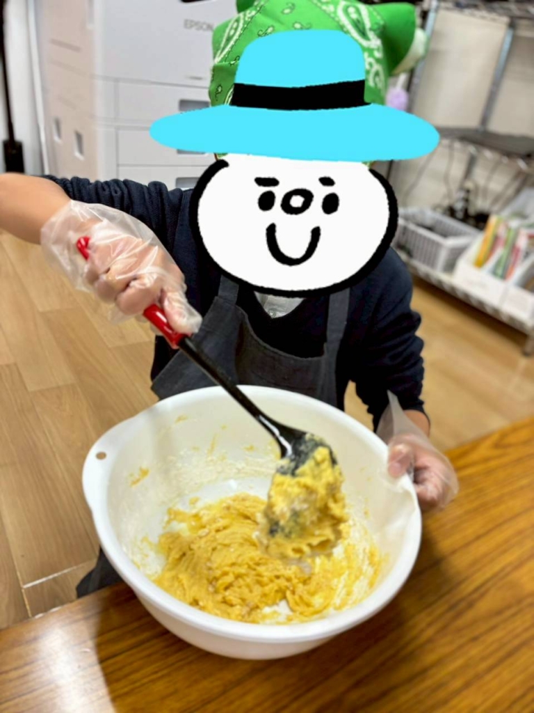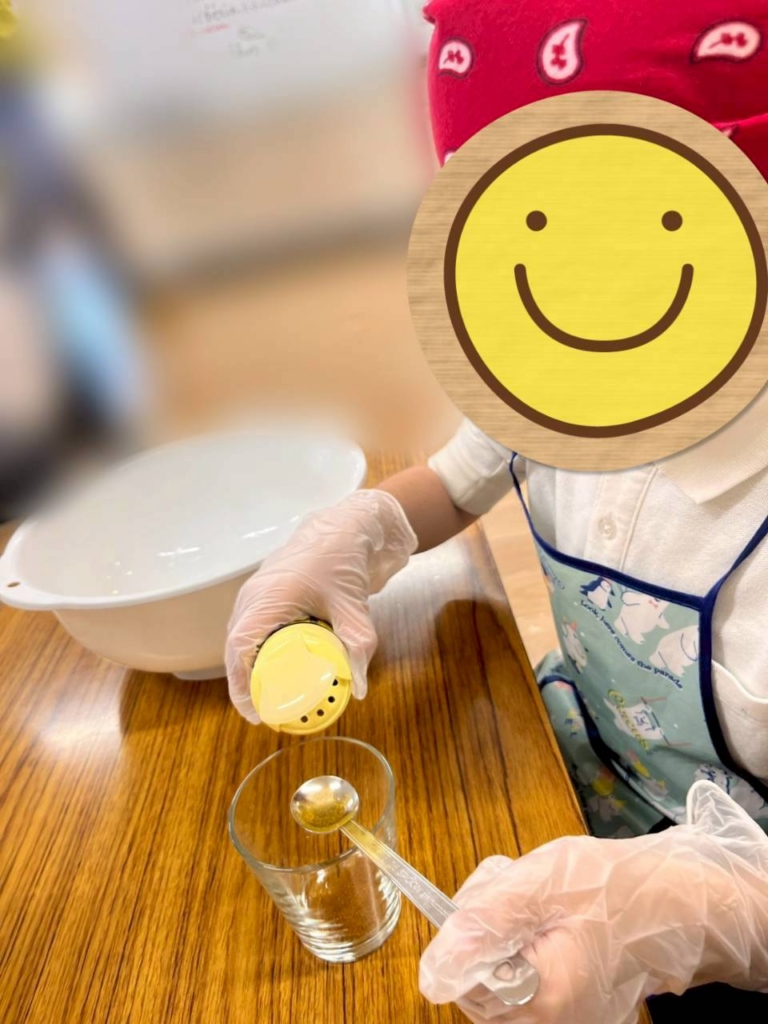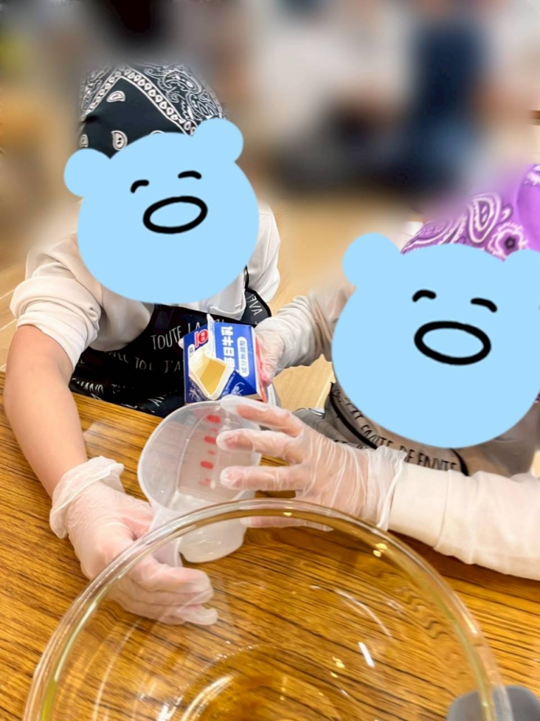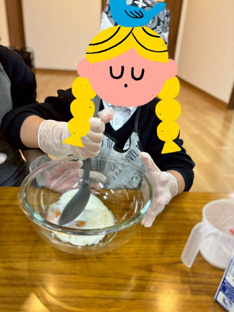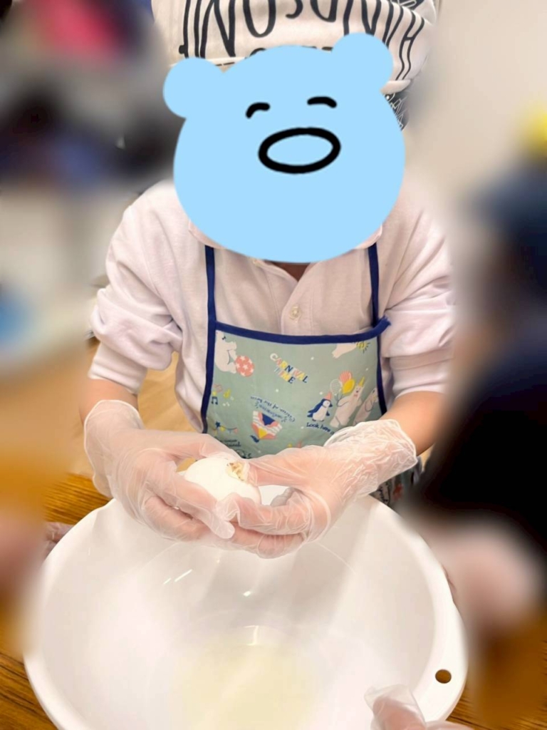 牛乳を入れる人、卵を割る人、マヨネーズ・カレー粉を
