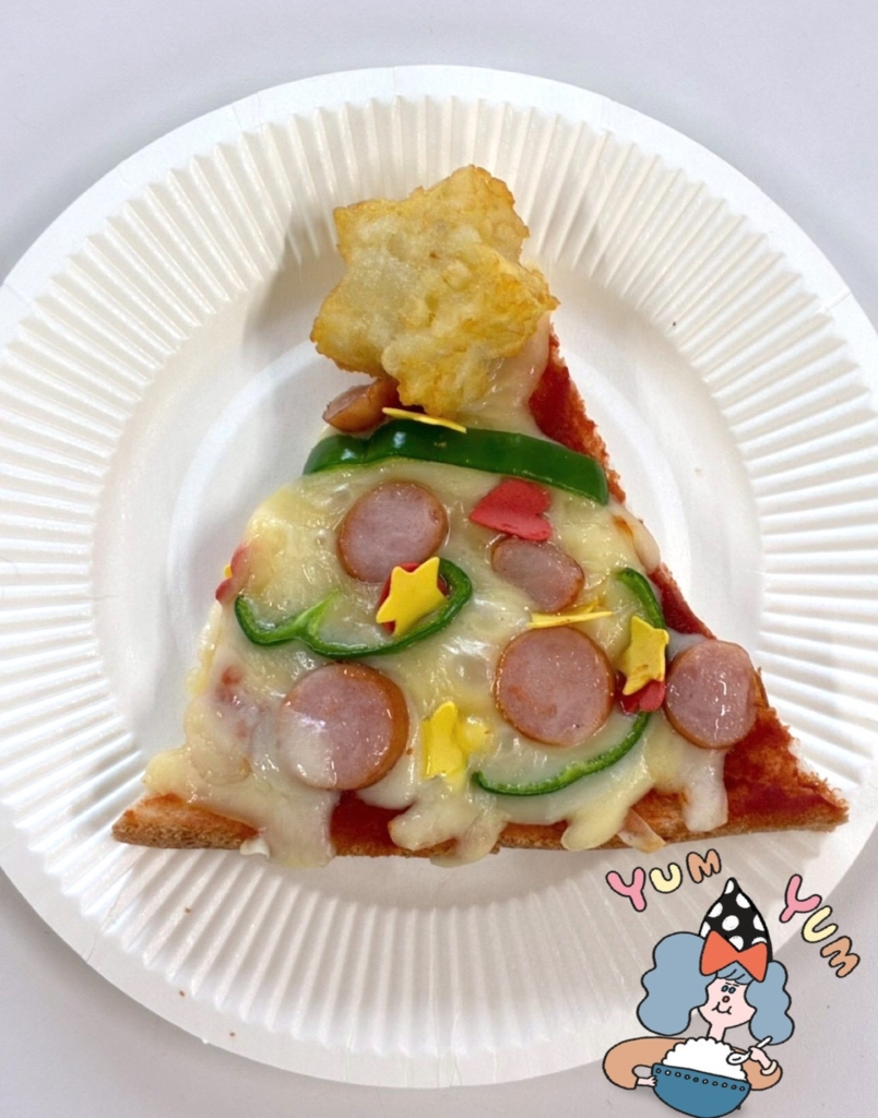 プレゼント交換後みんなで作ったピザが焼きあがったので