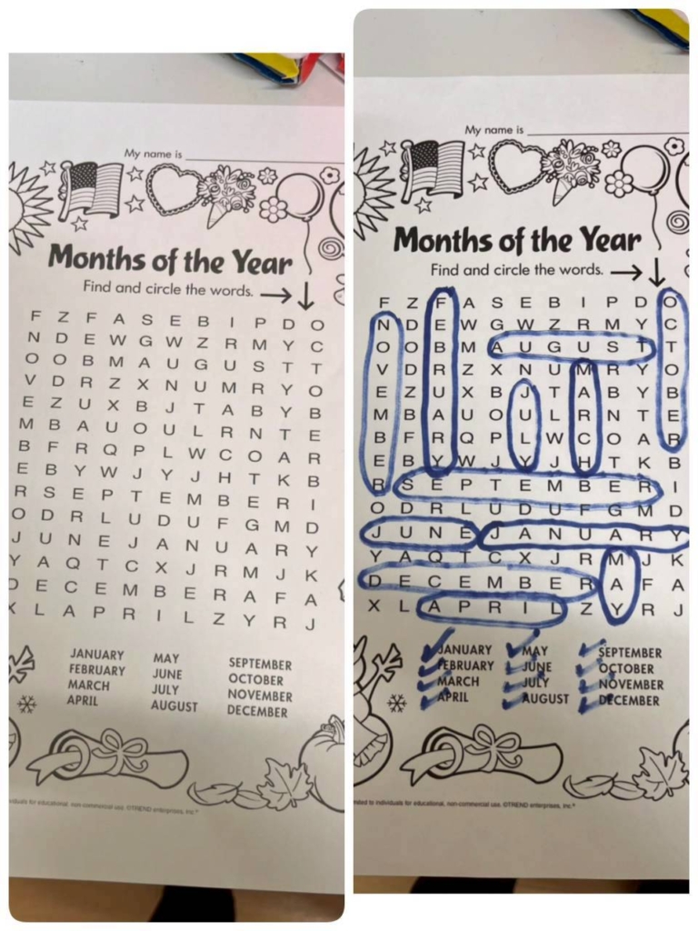 最後にアルファベットの中から1~12月のスペルを