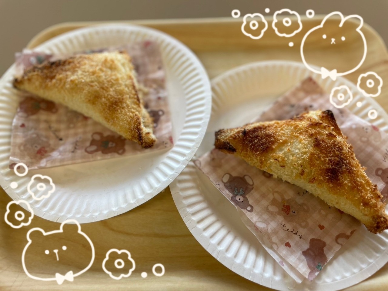 ①食パン(8枚切り)の耳は切り落としておきます
