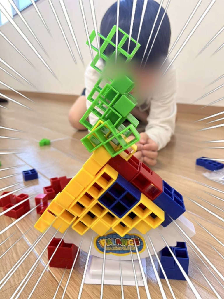 こんばんは、春日野ラボⅡです。今日はバランスゲームで遊んでいる様子を紹介します😁バランスゲームは半円のステージに各プレイヤーが順番にカードを1枚引いてカードの内容に従ってブロックをステージに置いていき塔を倒したプレイヤーが負けとなるゲーム... -