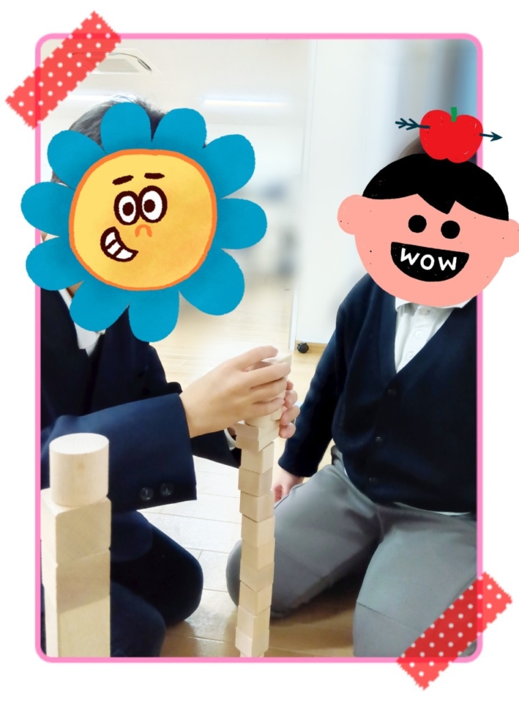 こんばんは、春日野ラボⅡです。つみきやジェンガを使ってどこまで高く積み上げることができるか挑戦してみましたヾ(≧▽≦*)oつみきは四角、円柱、三角などなど色んな形を一緒に積み上げていきました座っている自分の高さより高くできるかハラハラしながら挑... -
