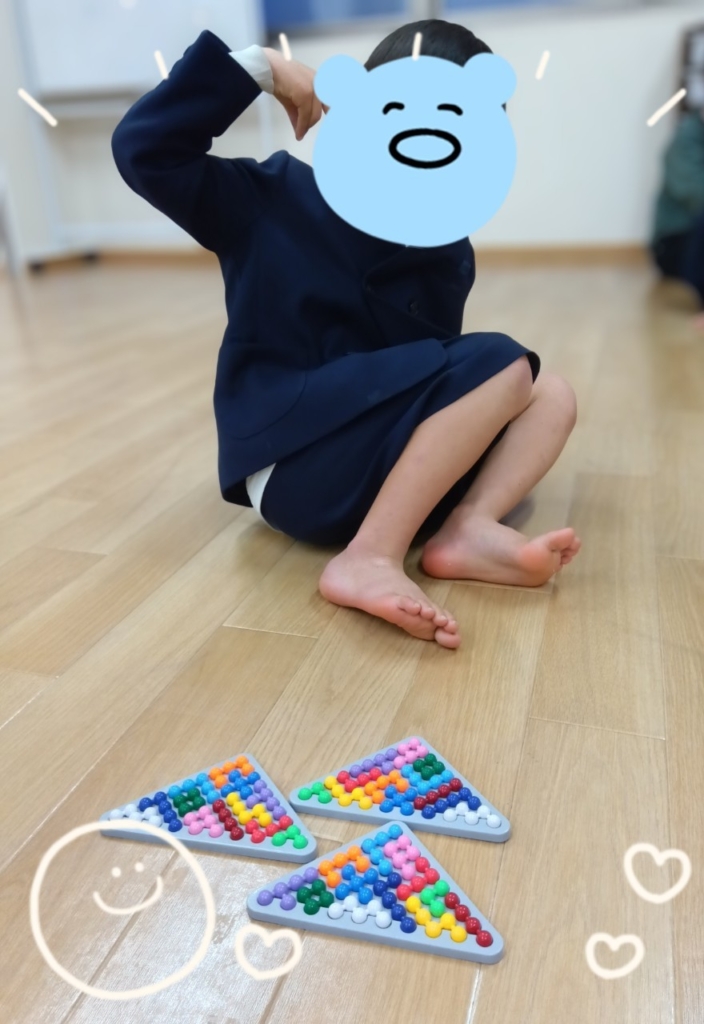 こんばんは、春日野ラボⅡです。最近かたはめパズルに挑戦している子どもたちがいます😁かたはめパズルは12色のパーツを三角形の型にはめていくパズルです。最初のころはなかなか完成しなかった1年生のお友だちは今回は簡単に1個目を完成させましたo(≧∀≦)oす... -