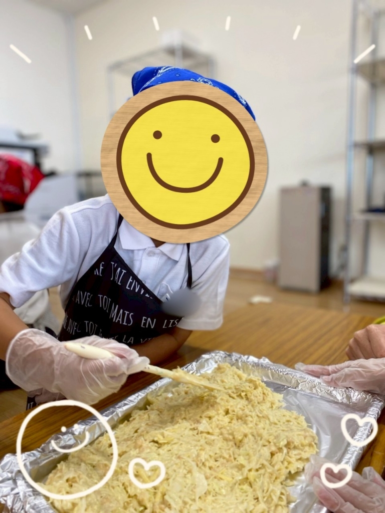 お好み焼きこんばんは、春日野ラボⅡです。おやつ作りでお好み焼きを作ってから子どもたちから「今度いつお好み焼き作る?」とリクエストが多かった「お好み焼き」を作りました😋2グループに分かれて生地を混ぜていきました。生地が混ざると千切りキャベツ、天かす、...