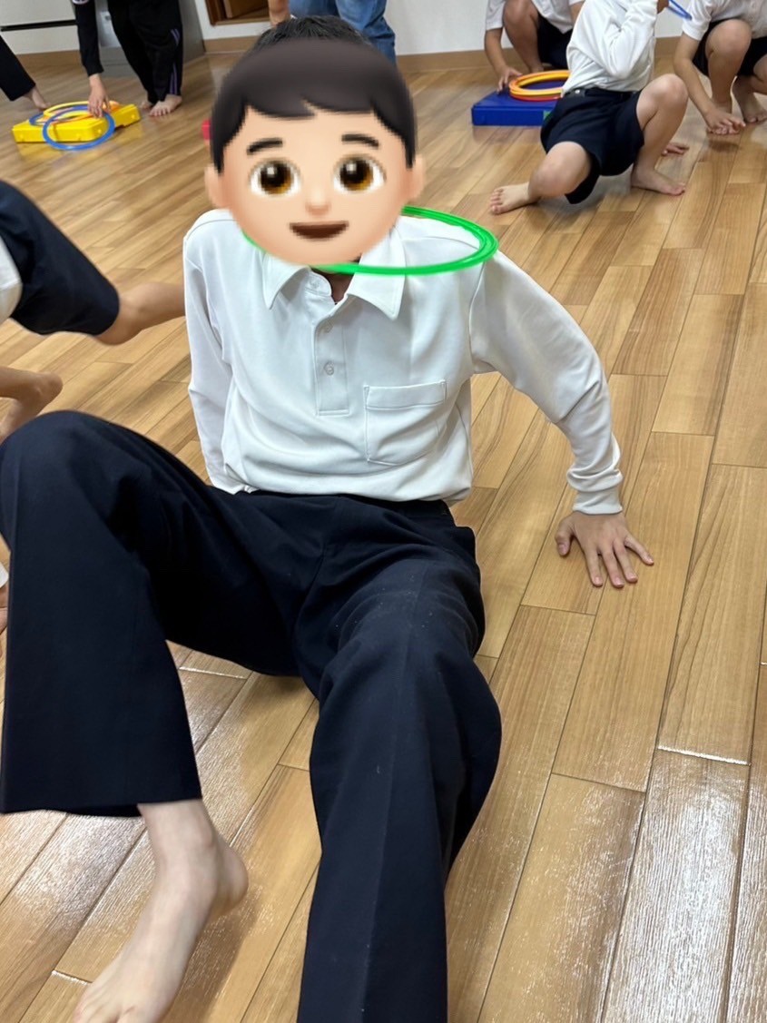 ①マット運動 ②ごむひも飛び ③チャレンジドッジビー