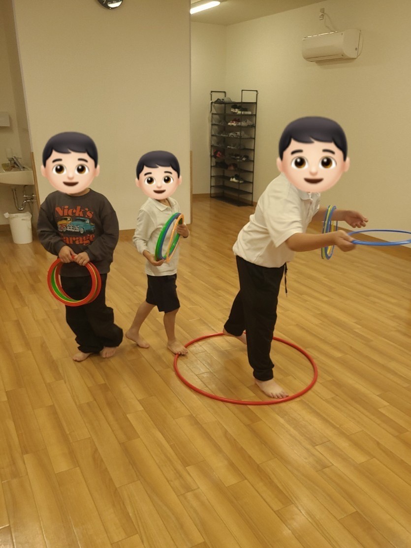 ラジオ体操で体を温めてから今日はフープやマット運動