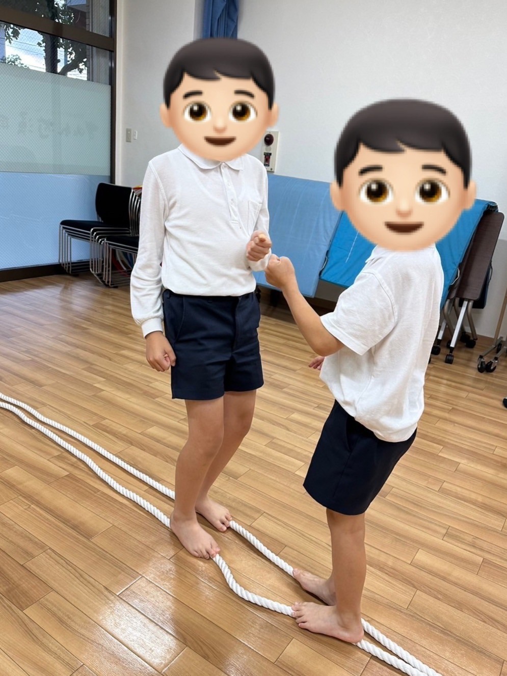 次にロープの上を歩いて対向の人とじゃんけんをして