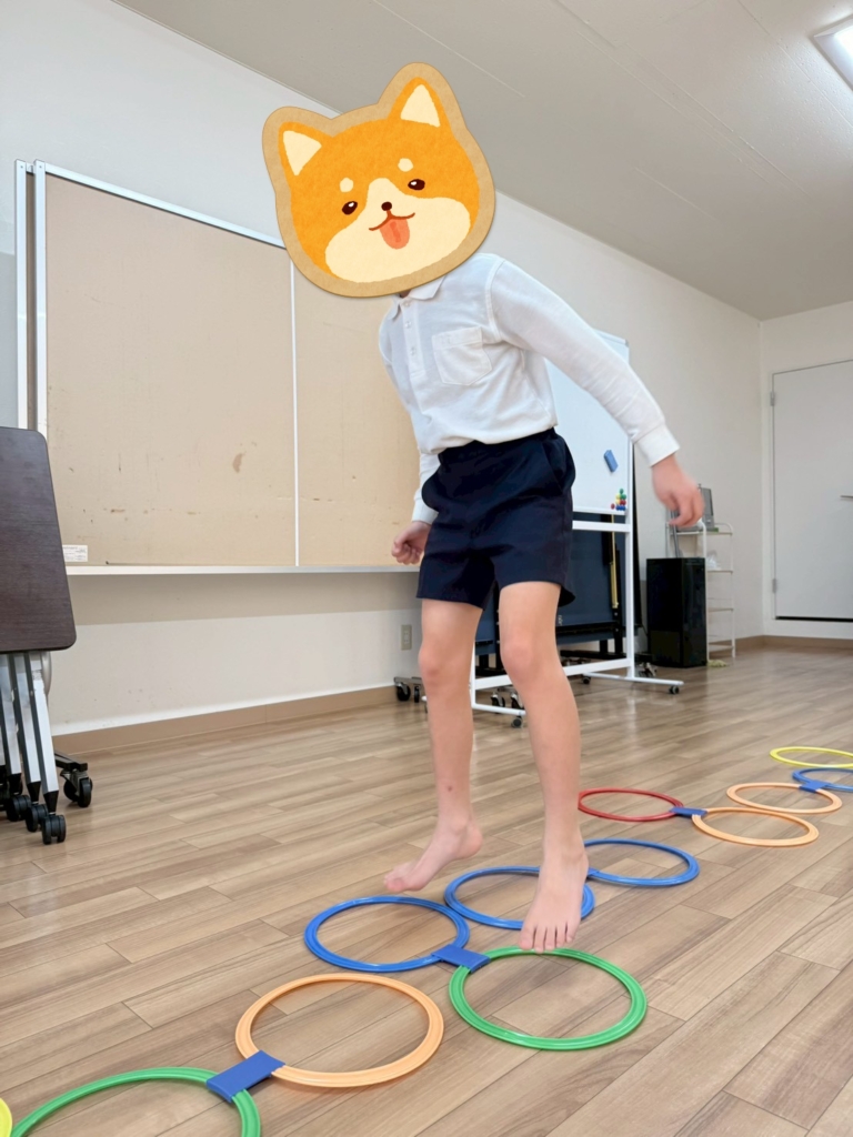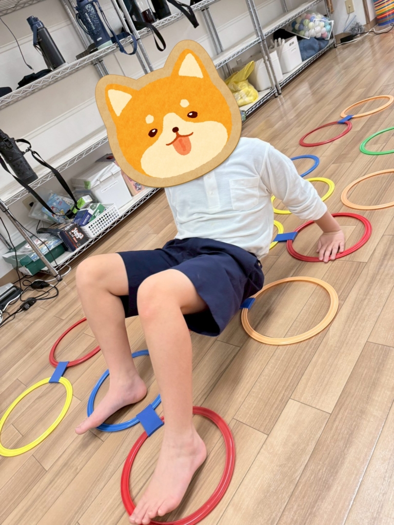 輪っかをたくさん並べてケンパーとびや