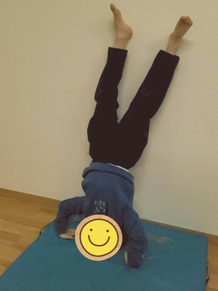 手をついて壁に背を向ける逆立ちは難題です‼️