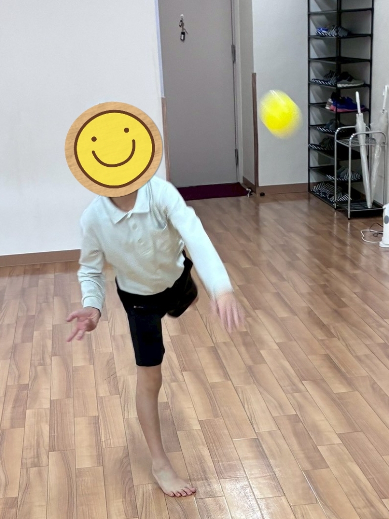 次にカラーボールでキャッチボールです⚾