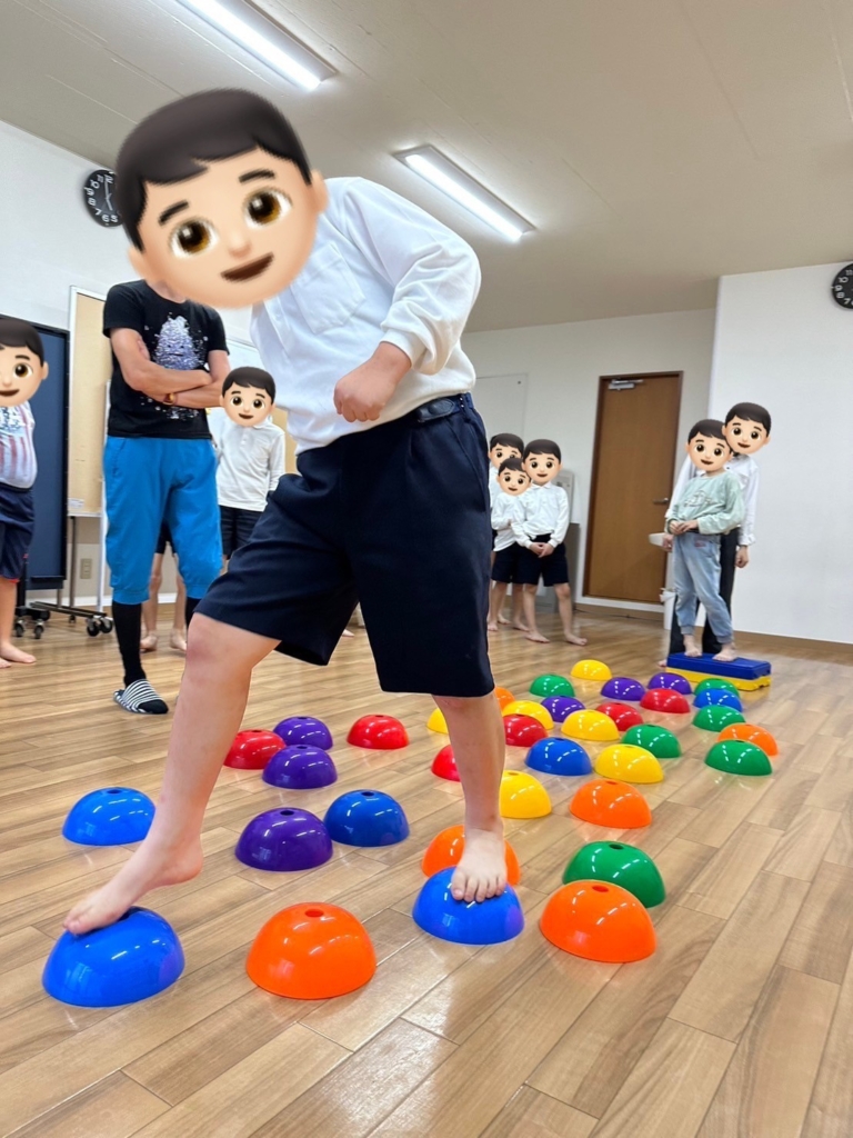 こんばんは、すみれ遊湧です。 運動教室の様子です💪 カラフルな半円のストーンの上を バランスをとりながら歩いたり フリスビーでドッジをしました😊 プログラム よかったらシェアしてね! URL Copied! 運動教室 運動教室