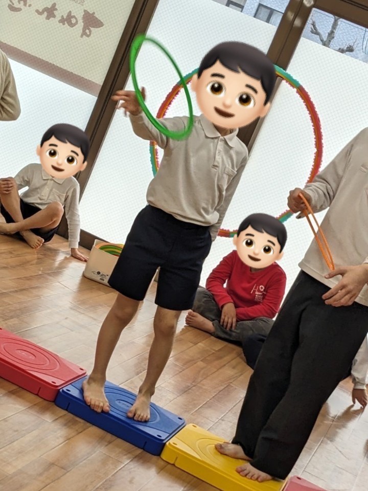 フラフープを使った楽しい運動を時間いっぱい