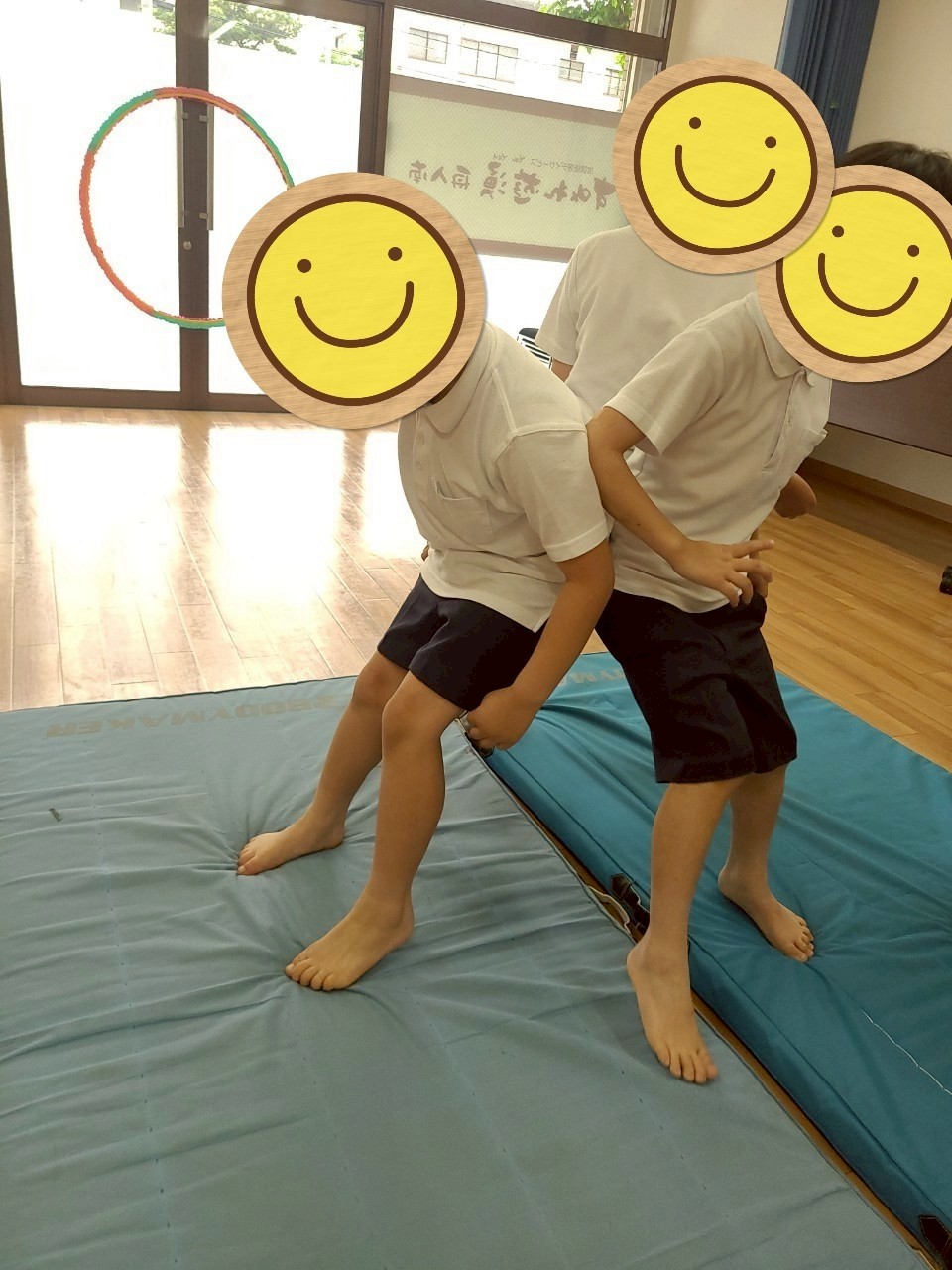 大筋運動ではテーブルを使ってよじ登ったり、跨いだり