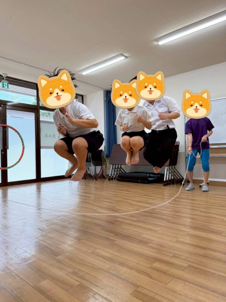 三人での連続とびや回りながら跳んでいろいろチャレンジしてみました。