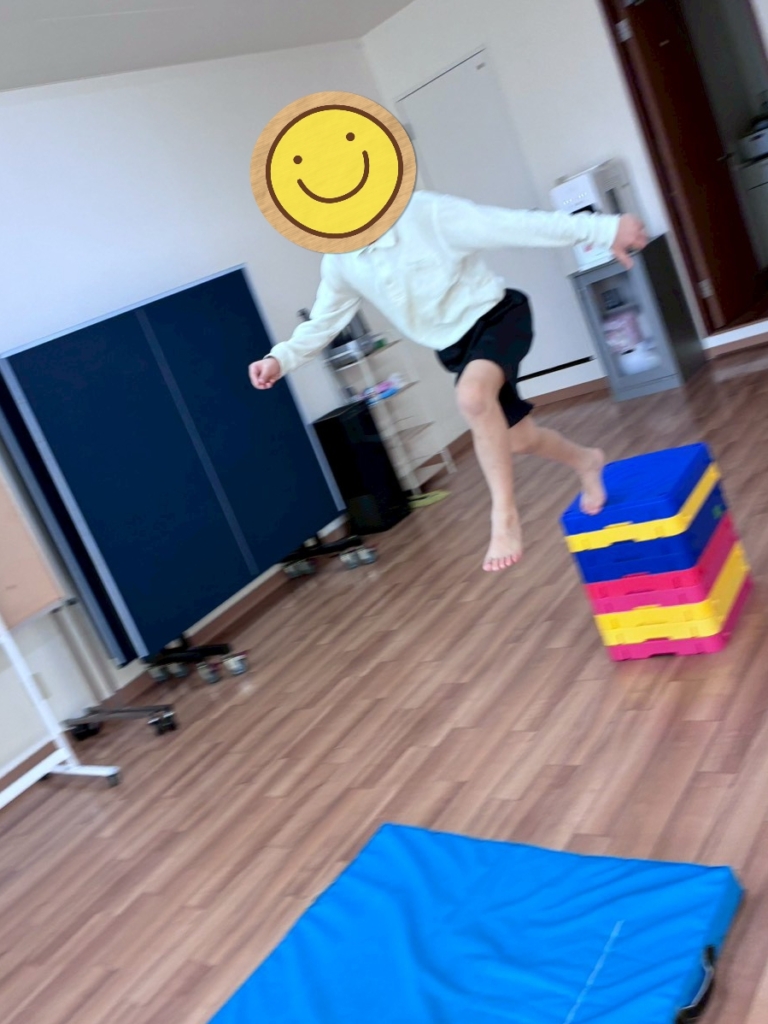 こんにちは、すみれ遊湧です😊運動教室の様子です✨ラジオ体操を行ってからマット運動から始めました❗ステップ台からマットに飛び乗って前転、ステップ台から手をついて前転を行いました。怖がることなくチャレンジできました🎶続いて立てた机に足をついて逆... -