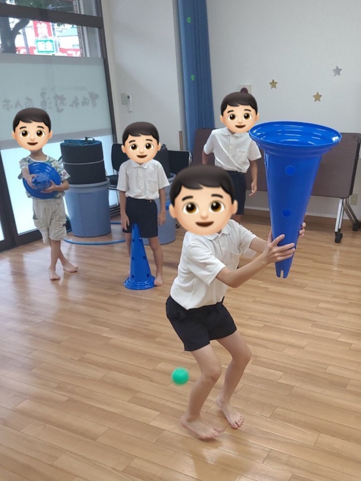 こんにちは、すみれ遊湧です。運動教室の様子です🎶ドッジビーを使った運動やカラーコーンを逆に持ってカラーボールキャッチなど道具を使った運動を楽しんでいました(^^♪ -