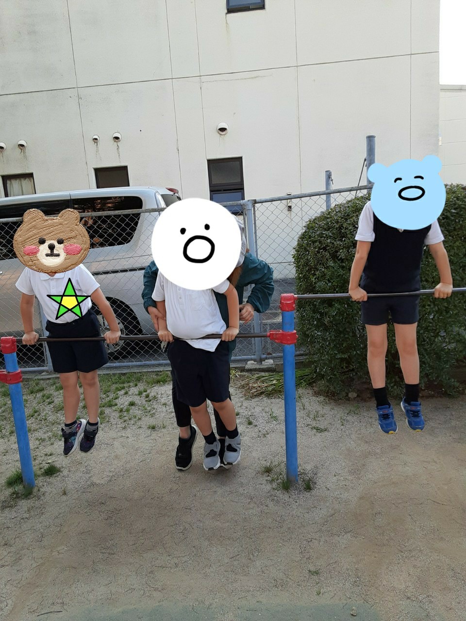 鉄棒にぶら下がって腕や体幹を鍛えたり