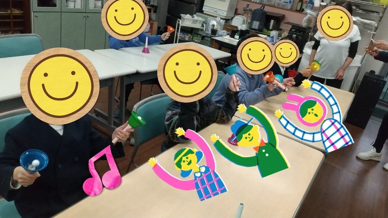 こんばんは、すみれ遊湧です。 今日は金曜日プログラムのハンドベル教室です! 「エーデルワイス」や「威風堂々」など 様々な曲を練習しています♪ 繰り返し練習していることもあり 上手に演奏出来るようになっています!(^^)! プログラム よかったらシェアしてね! URL Copied! おやつ作り☆彡 アート教室☆彡