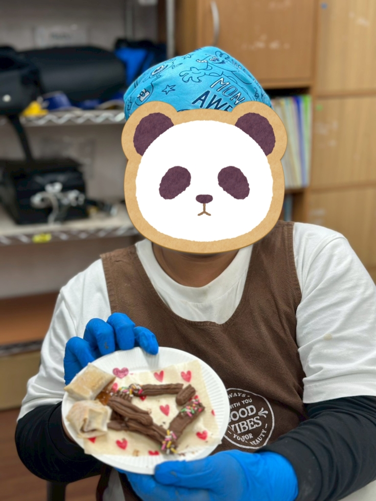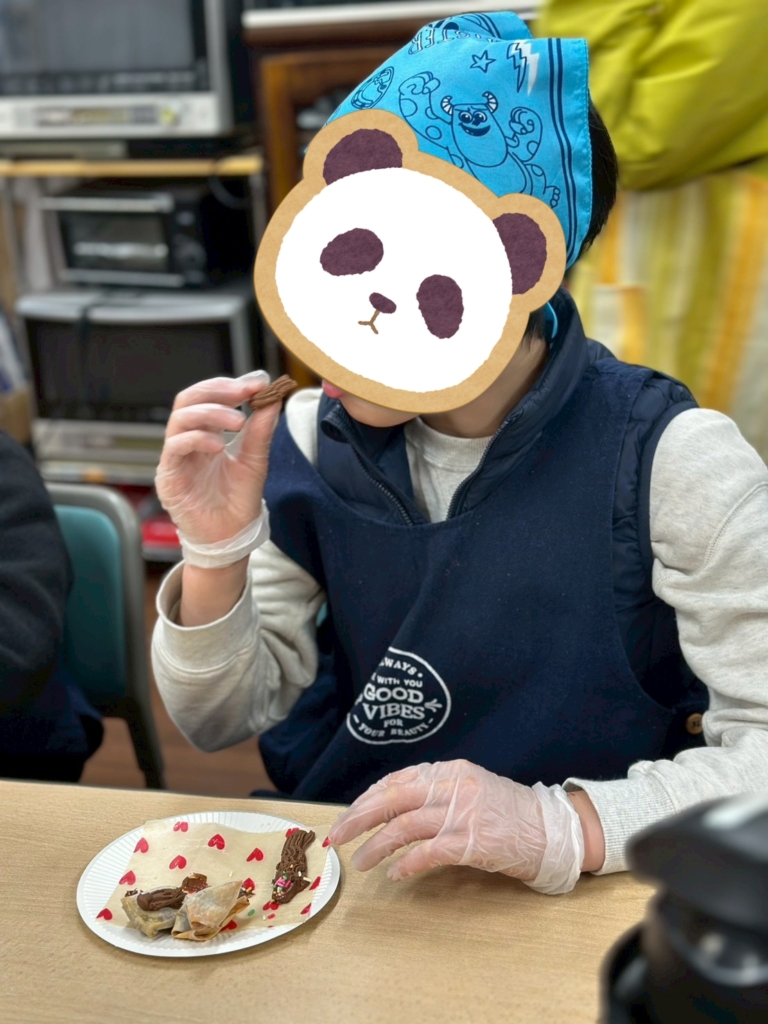 お皿に盛り付け「甘くておいしい〜🥰」と