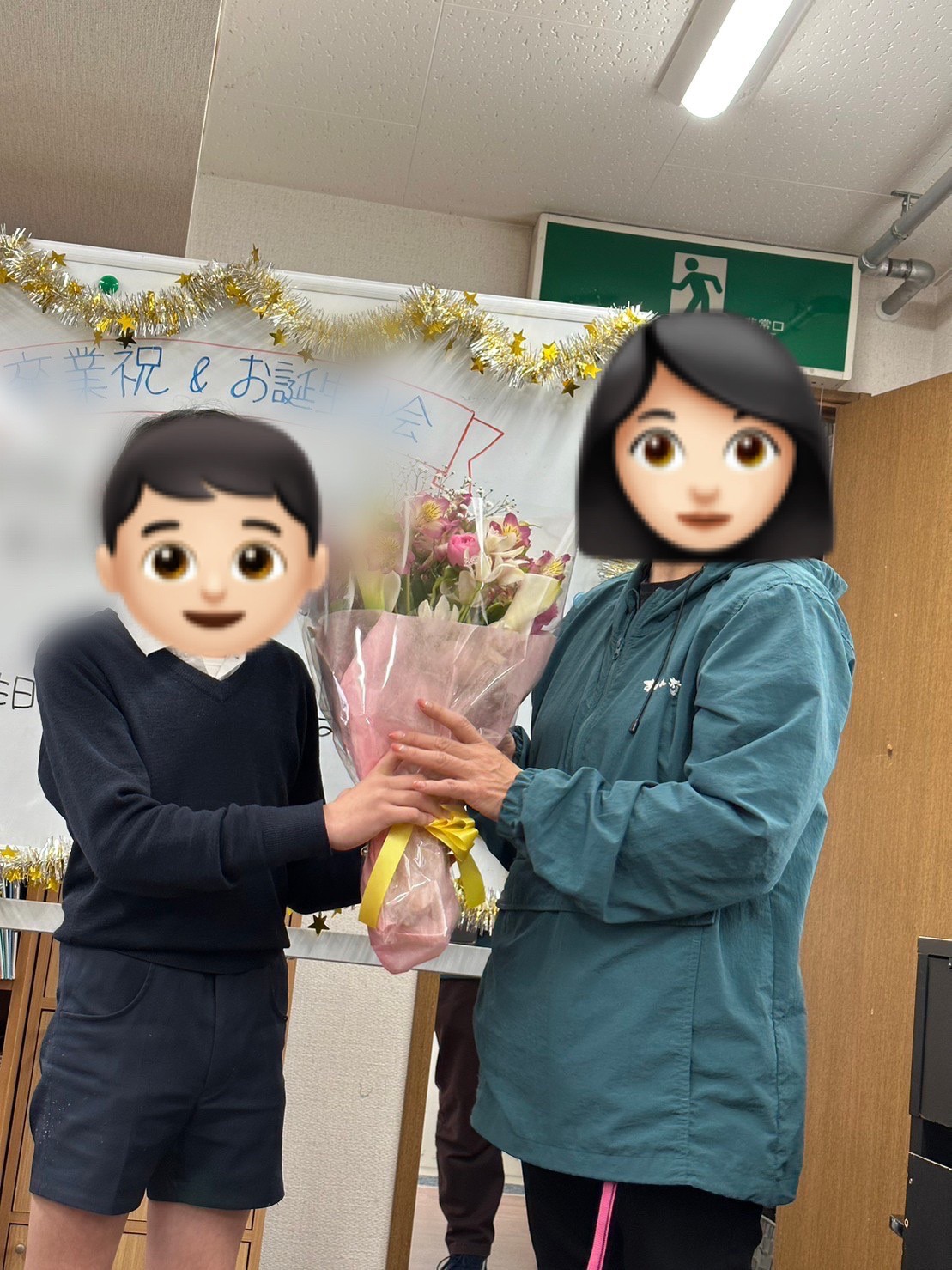 今日は3がつのお誕生日会と小学校卒業のお祝いの会を