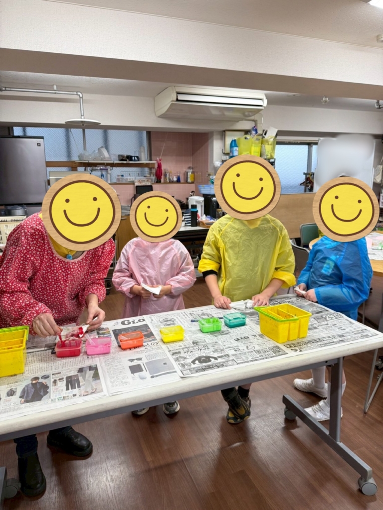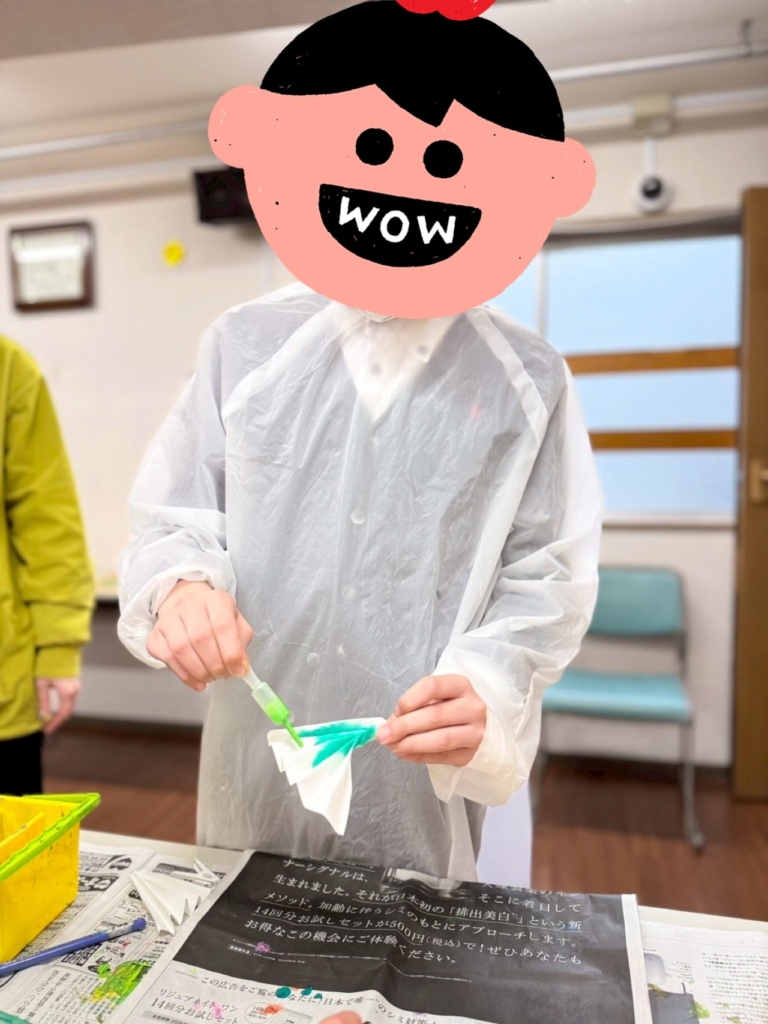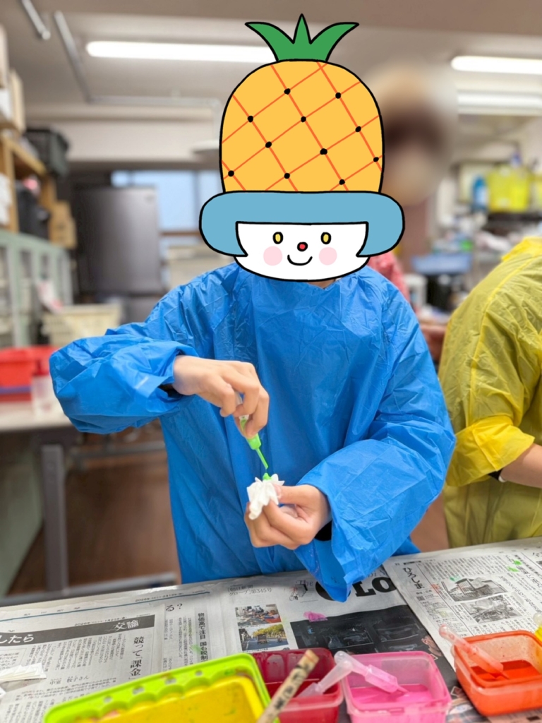 スポイトを使い、みんな楽しく色染の作業を