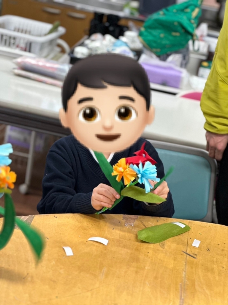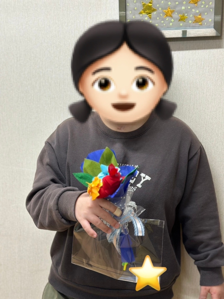 こんにちは、すみれ遊湧です。 アート教室の様子です。 リボンを使った可愛い花束を作りました。 手先を使った細かい作業が多かったですが 苦戦しながらも作りたい花束を作って 頑張っていました(^_-)-☆ プログラム よかったらシェアしてね! URL Copied! おかしつくり♪ オレオカップケーキ♪