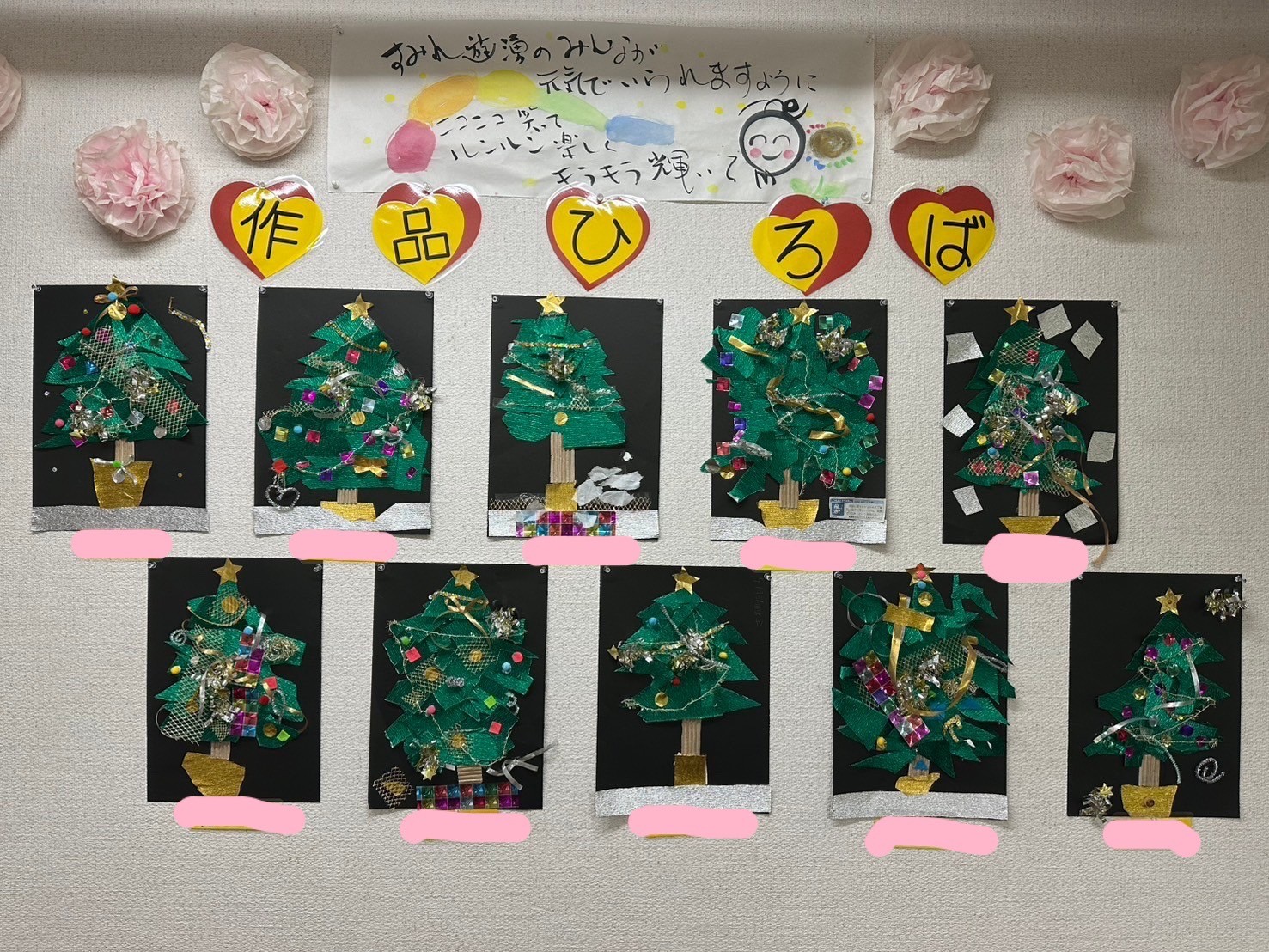 キラキラ輝くクリスマスツリーの壁画が完成し、