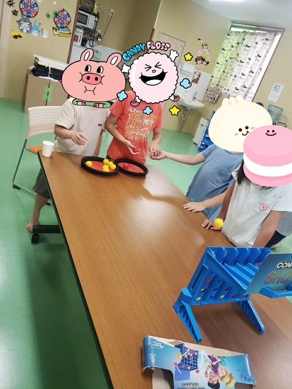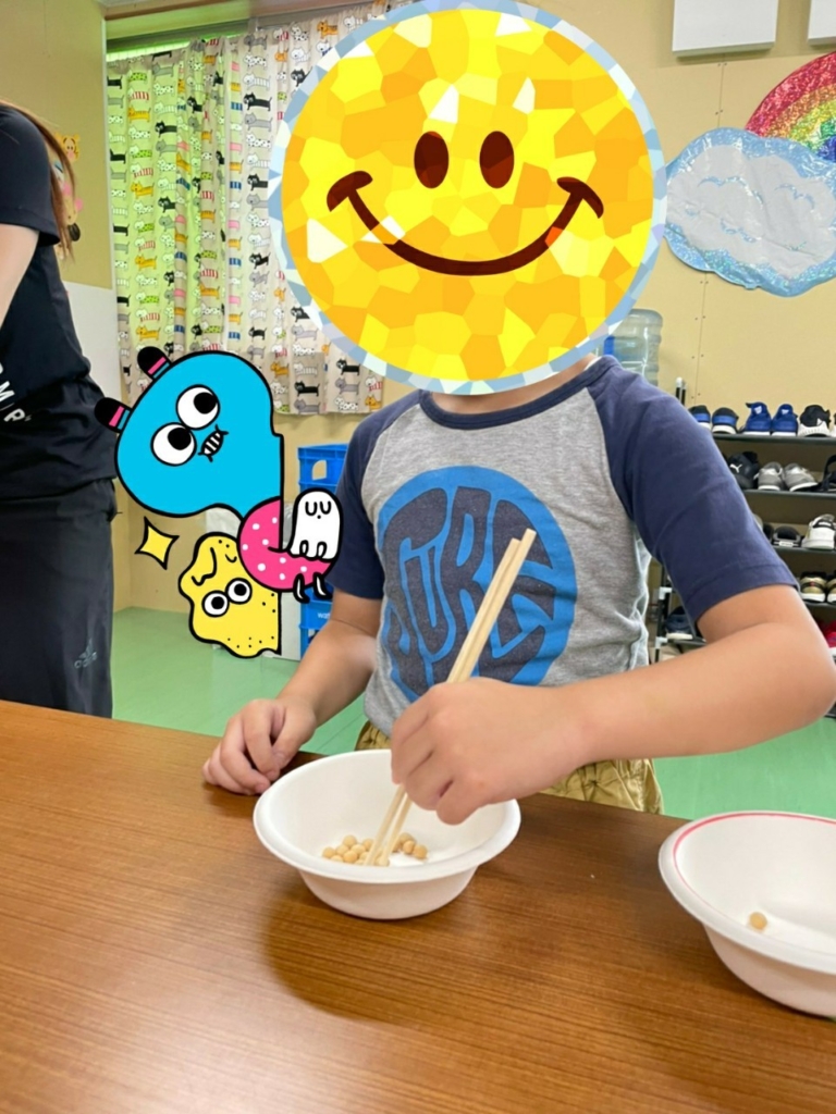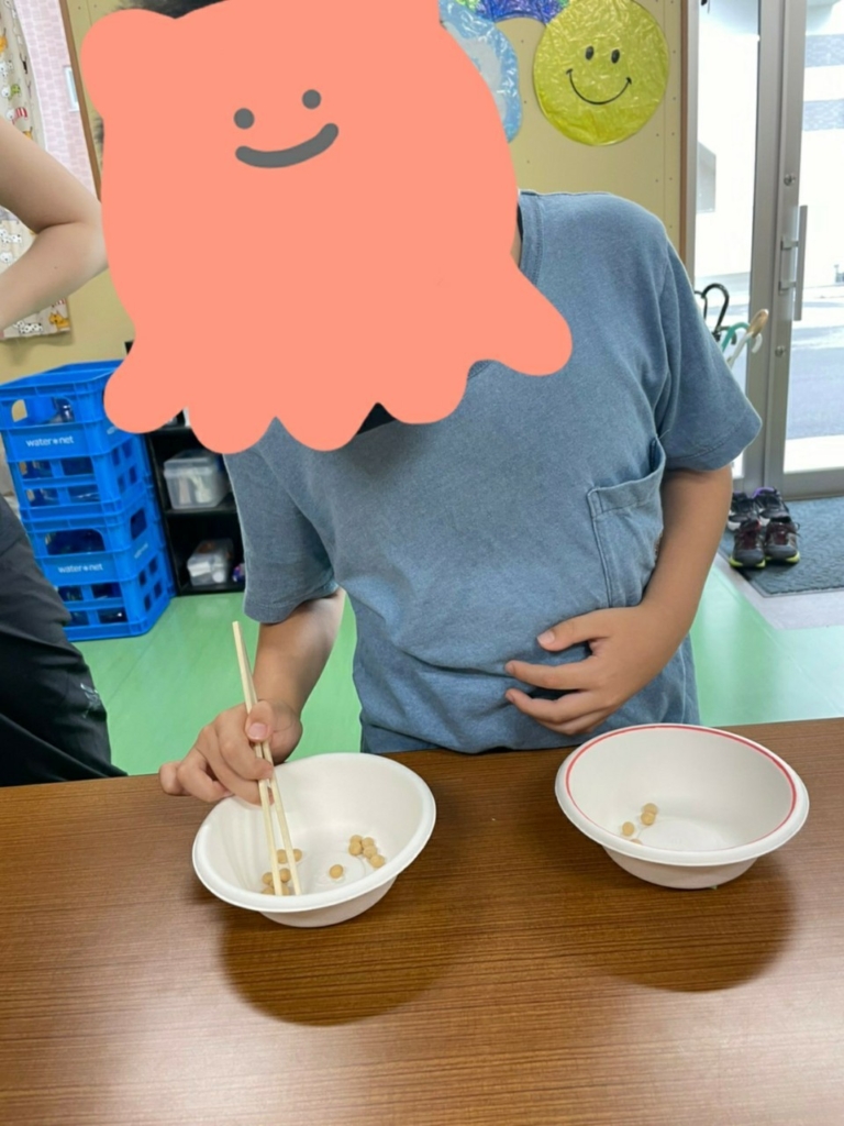 「豆つかみ」と「輪投げ」をしました(^^♪