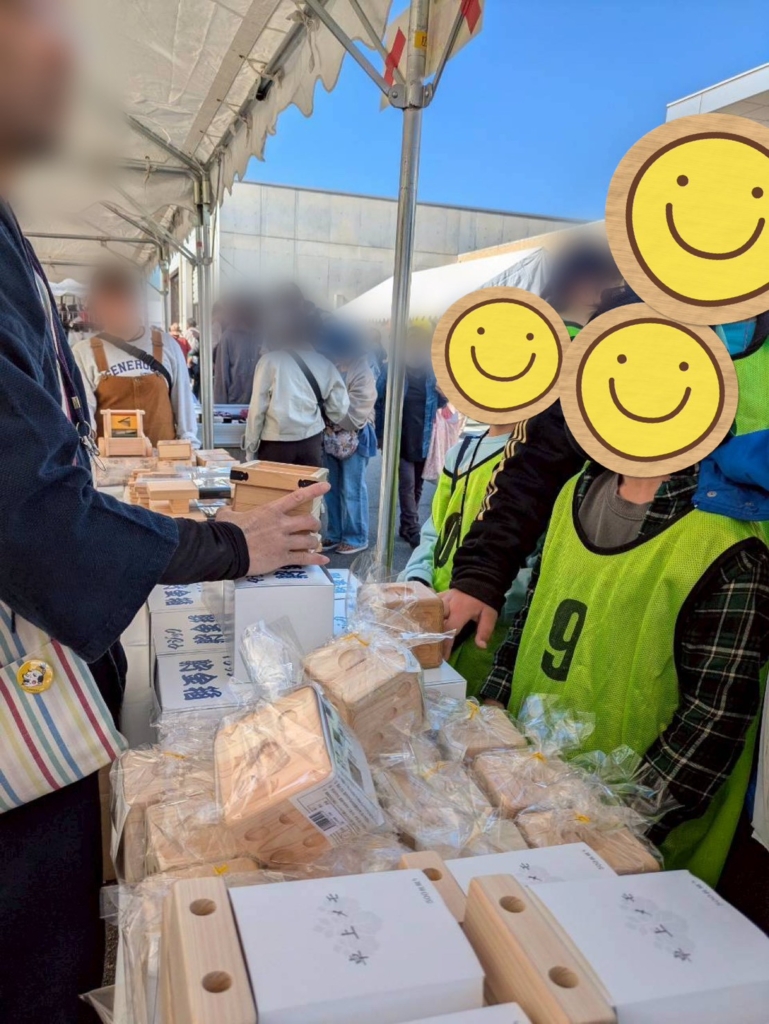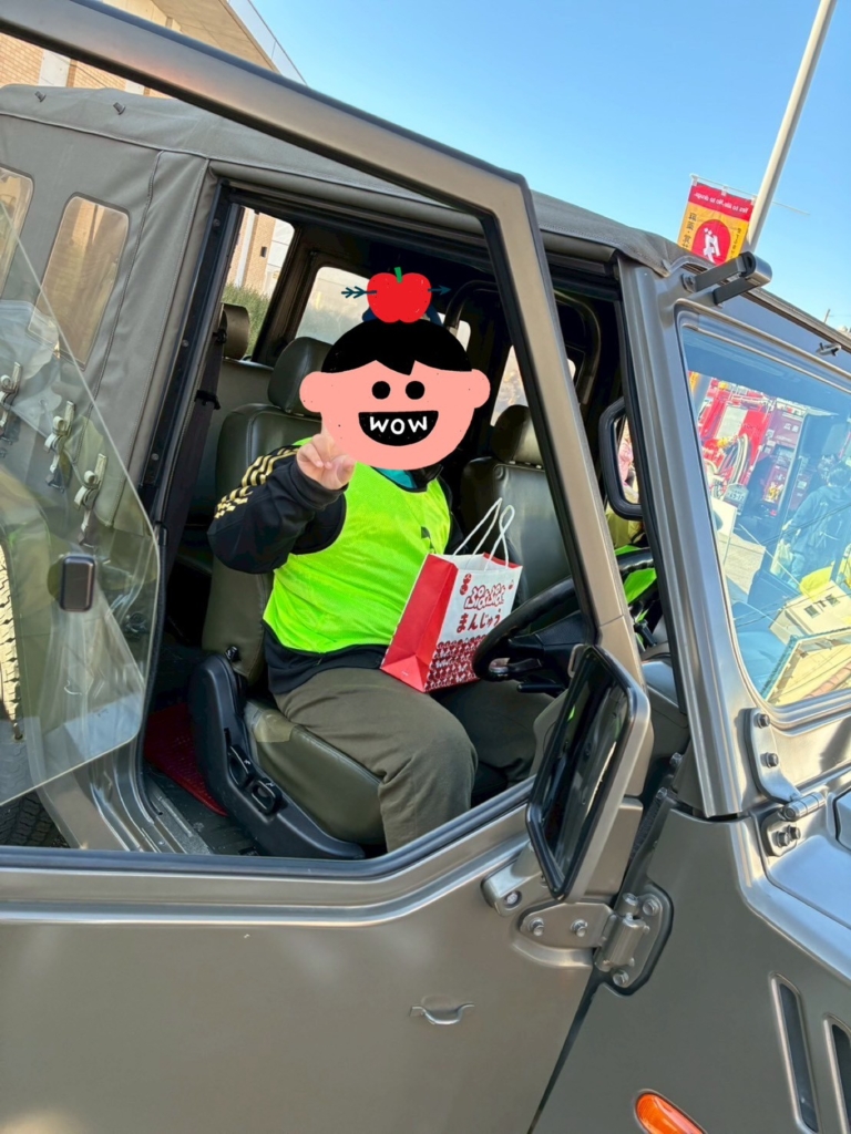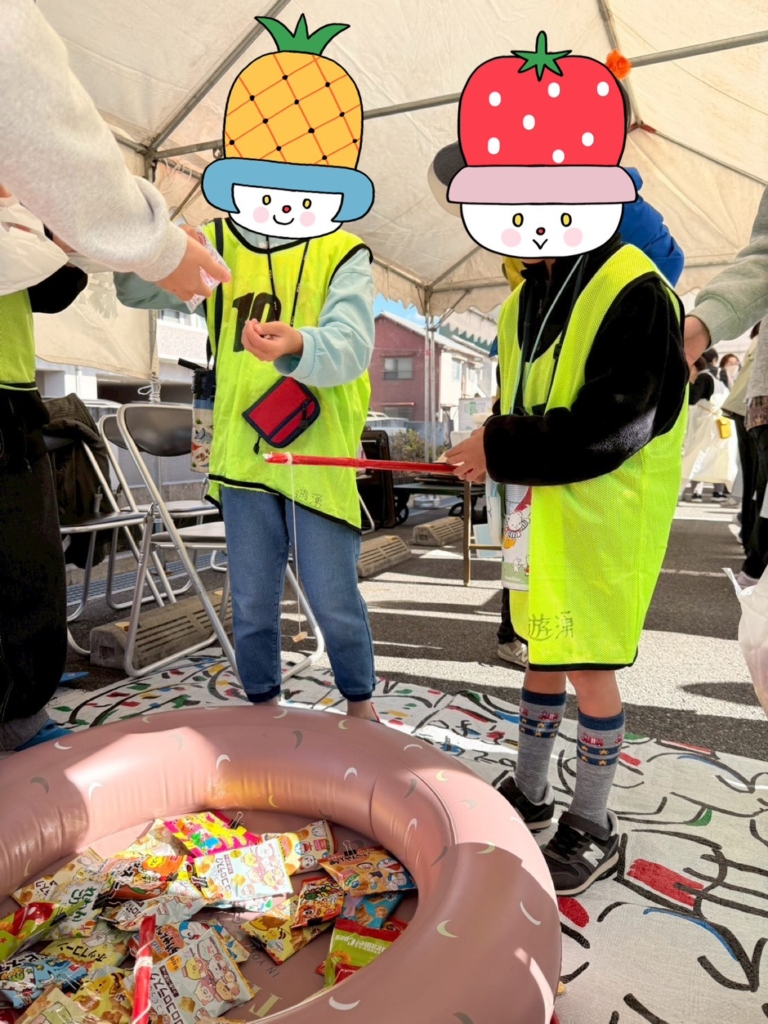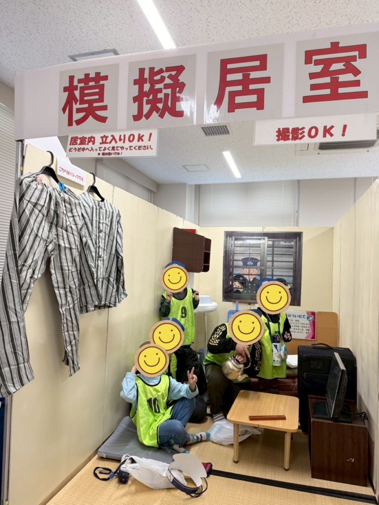 乗ったり、模擬居室での記念撮影、お菓子つりや