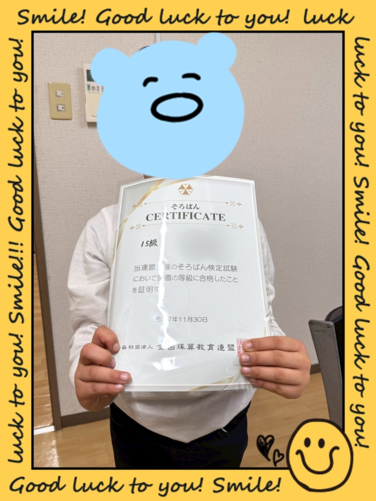11月のそろばん検定で合格した