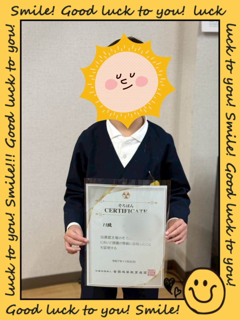 子どもたちの合格証書が届きました\(^o^)/