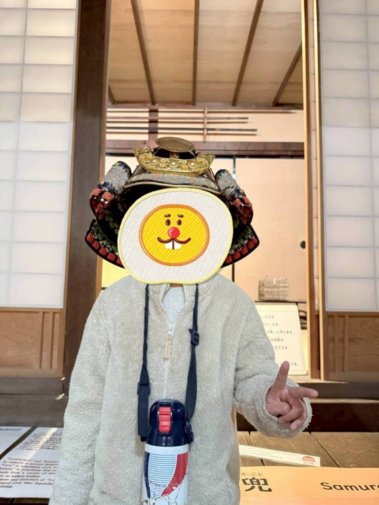 あり、兜をかぶって記念撮影ができました。