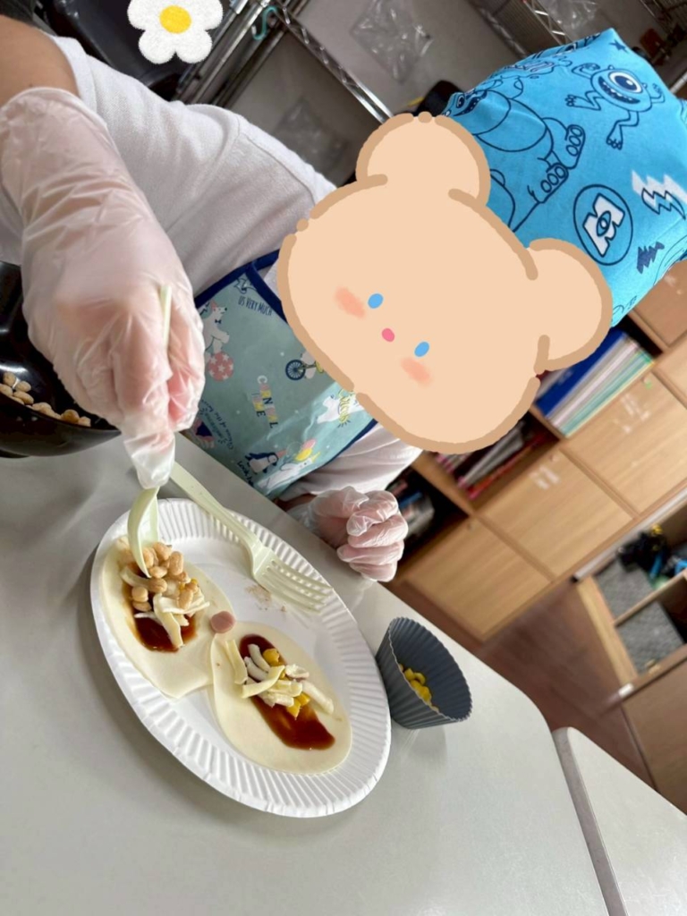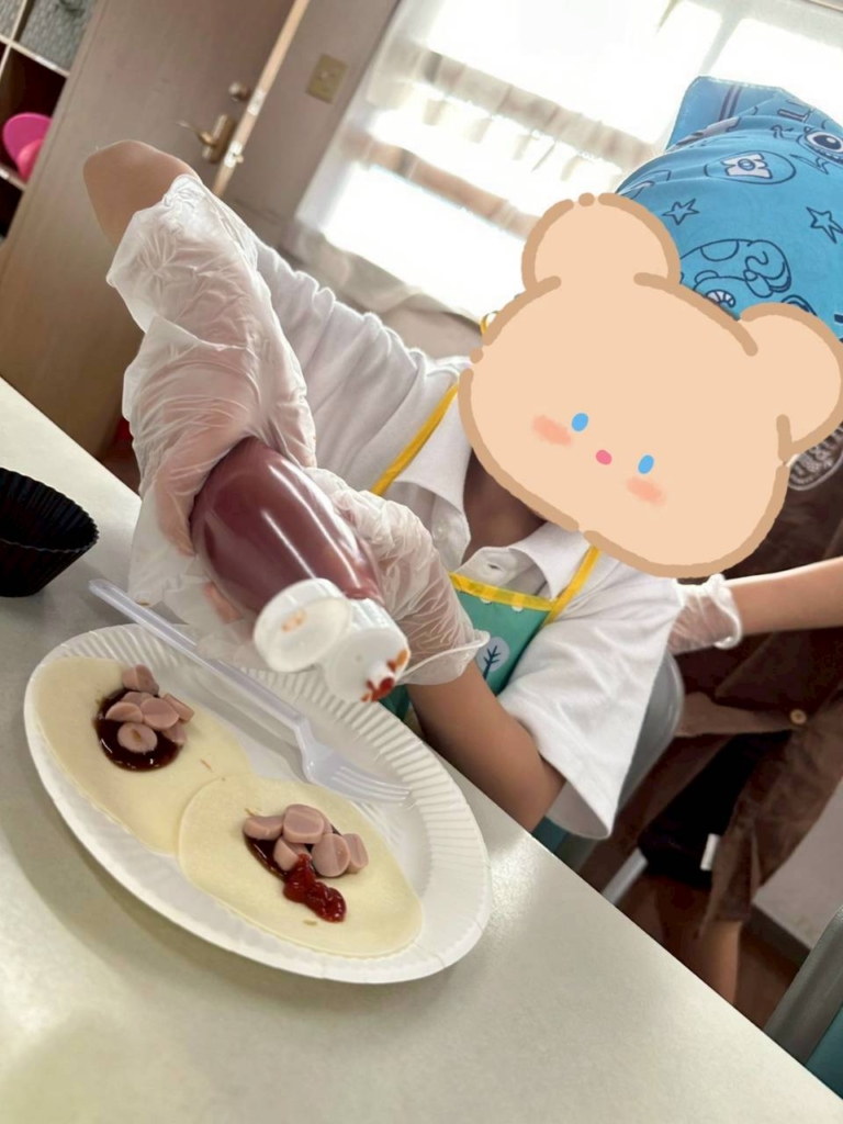 餃子の皮の上に「ケチャップ・お好みソース」など