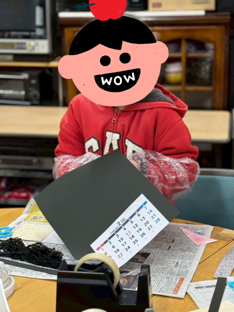 顔のパーツを作り、画用紙に貼ったら完成👏