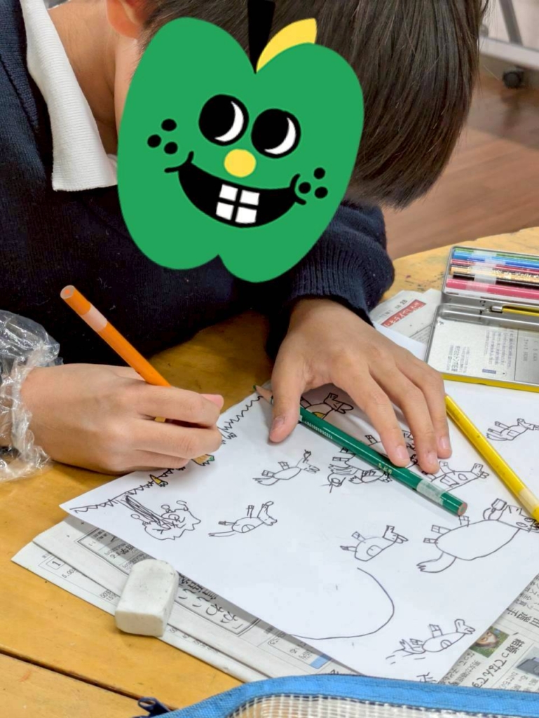 好きな図柄を選び、色鉛筆で自由に色塗りを