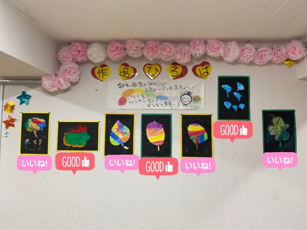 こんにちは、すみれ遊湧です。今日は月曜日プログラムのアート教室でした。今日は「クレヨンで色遊び☆葉っぱ作り」でした♪①画用紙にクレヨンで自由に色塗り②黒い画用紙に葉を描く③葉の形を切り取り④色塗りした画用紙に貼る⑤好きな色の画用紙を選び貼る⑥黒...