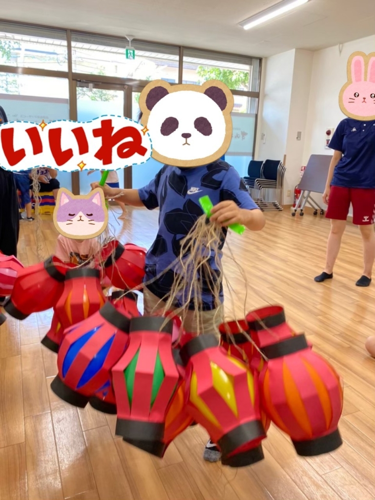 こんにちは、すみれ遊湧です。今日は明日の夏祭りに向けて二回目のお祭り準備です!提灯に膨らました風船を入れたりスーパーボールすくいや水風船すくいのポイを作ったりしました♫作りながら明日の話をしたりと楽しみすぎて待ちきれない様子でした(*^^*)