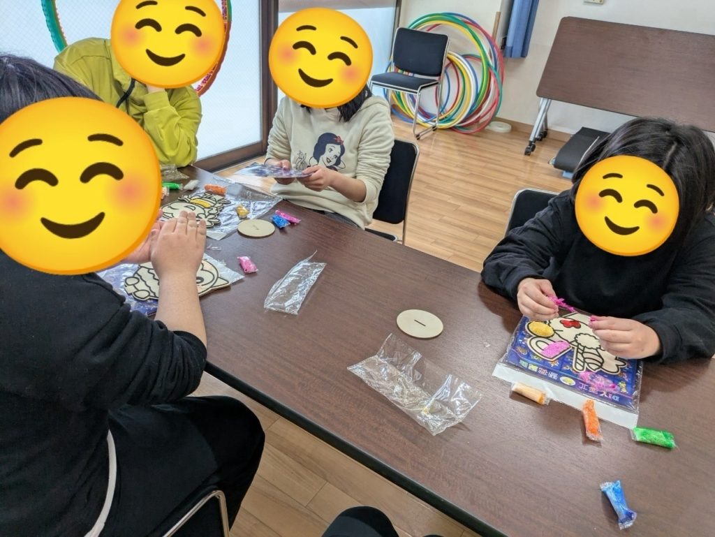 こんにちは、すみれ遊湧です。雪花泥画を作りました🌟材料を練って柔らかくし、型の板に張り付けるものです!すごく集中して取り組んでいました🌟それぞれ何を作っているのか話をしながら完成させていました♪ -